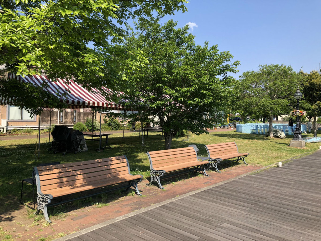 かんたん港園の敷地内にはカフェやガーデニングのお店など、おしゃれな店舗がいろいろと並んでいます。子ども向けのお店がないのが残念ですが、一度のぞいでみると、あなたにあったお店が見つかるかもしれません。